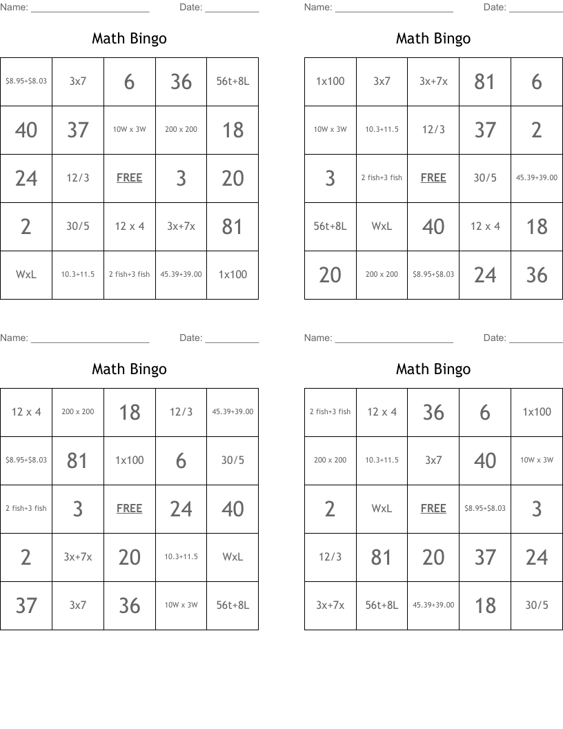 Math Bingo