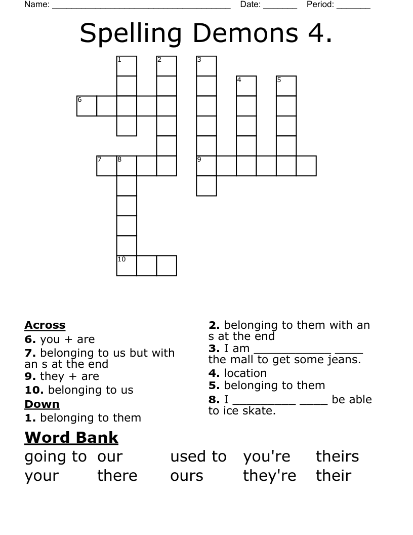 Spelling Demons Crossword
