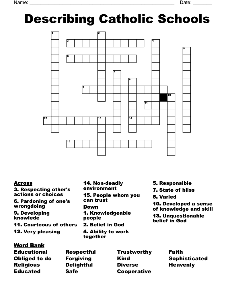 Catholic Schools Crossword